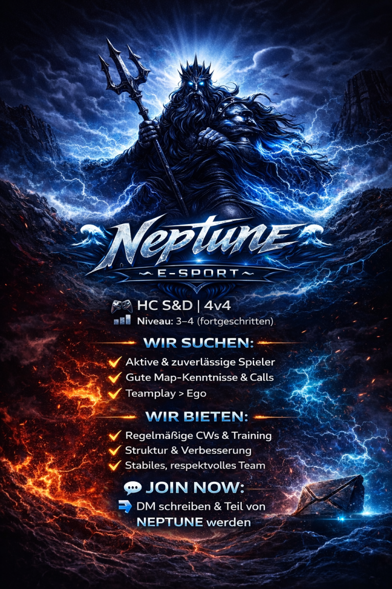 Neptune E-Sport ist mehr als nur ein Team. Wir stehen für Zusammenhalt, Respekt und das gemeinsame Streben nach Höchstleistungen. Unsere positive Atmosphäre fördert individuelles Wachstum und Team-Erfolge im Gaming- und Esportbereich.